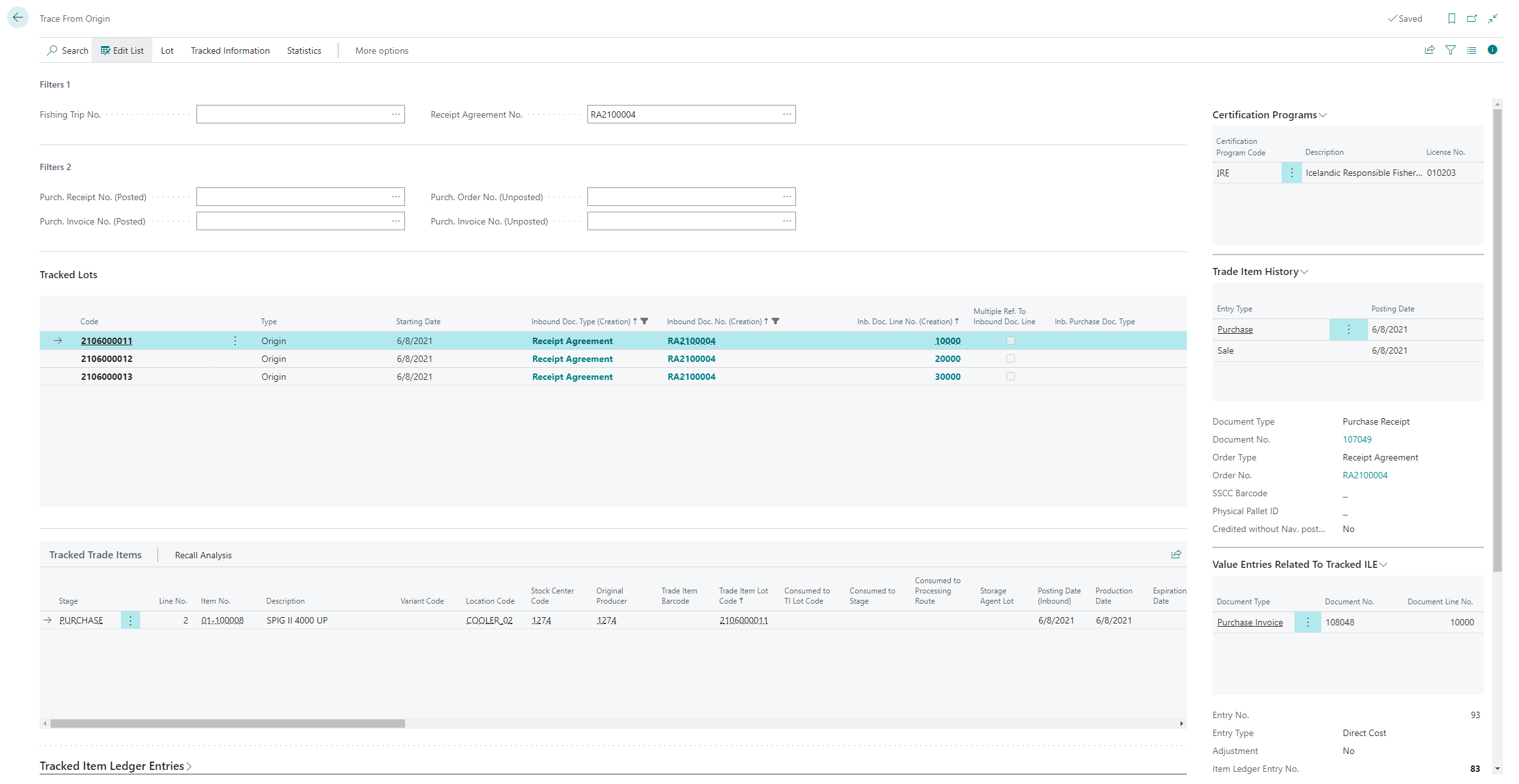 It is possible to trace the trade items to their origins. Click Navigate > Trace From Origin.