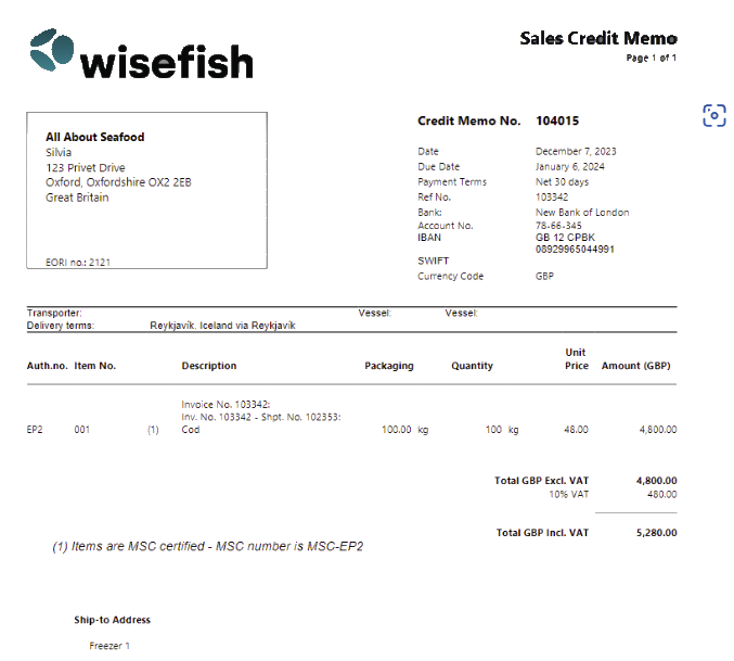 Error when printing Creditnote. "Customer does not exists = ''