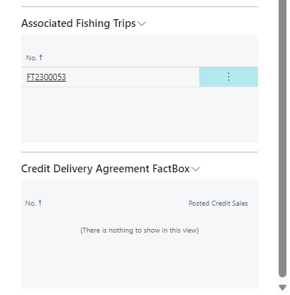 The information listed in the factbox of Delivery Agreement like “Associated Fishing Trips” and “Credit Delivery Agreement Factbox” are not very important for the Wisefish general users so these details have been hidden to make the factbox in the Delivery Agreement clean and less crowded.