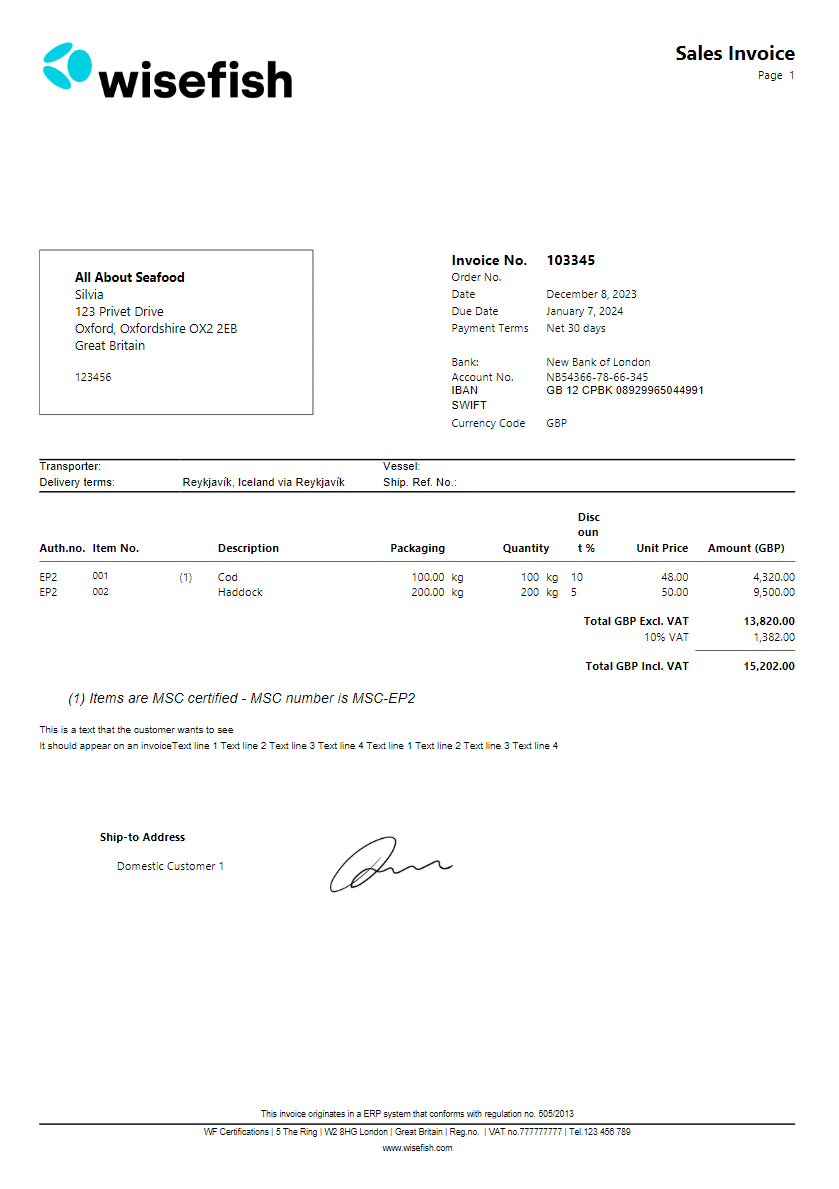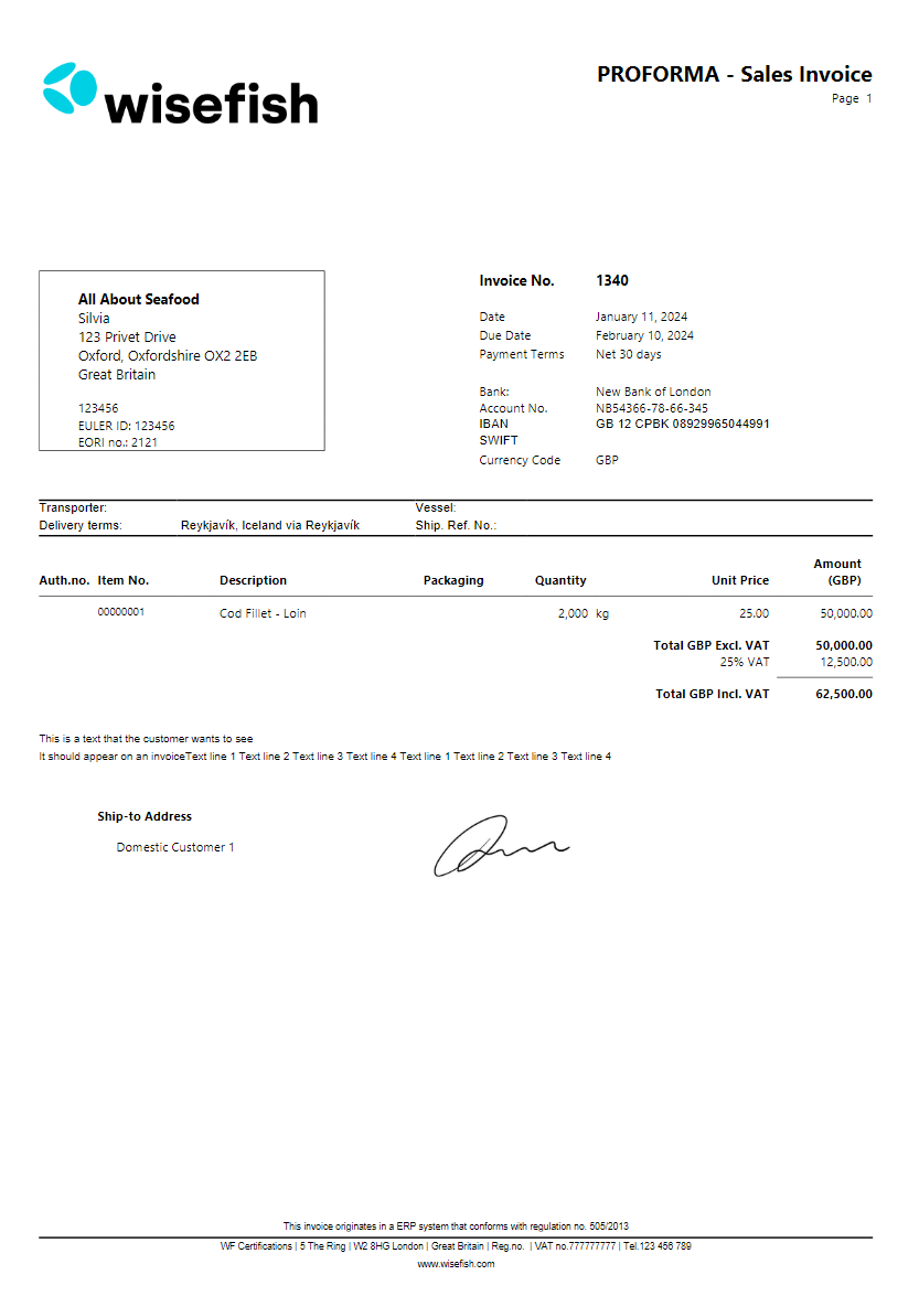 The users are also able to place a signature in Sales Invoice (10004730) Report and PROFORMA- Sales Invoice Reports(10004727).