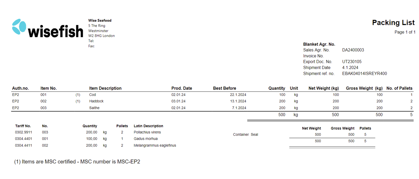 Issues with Packing Lists in Export