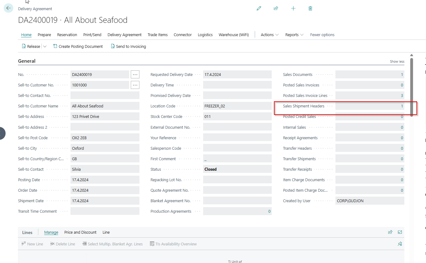 When clicking the link for the Sales Shipment Headers in a Delivery Agreement, the Posted Sales Shipment was not opened. This has been fixed.