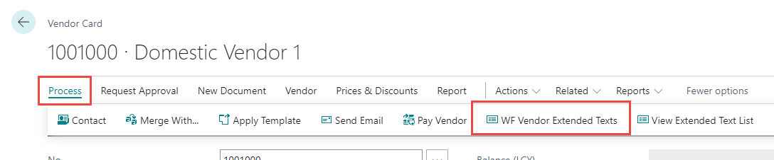 Go to the Vendor Card. Click Process > WF Vendor Extended Text to add text to vendor.