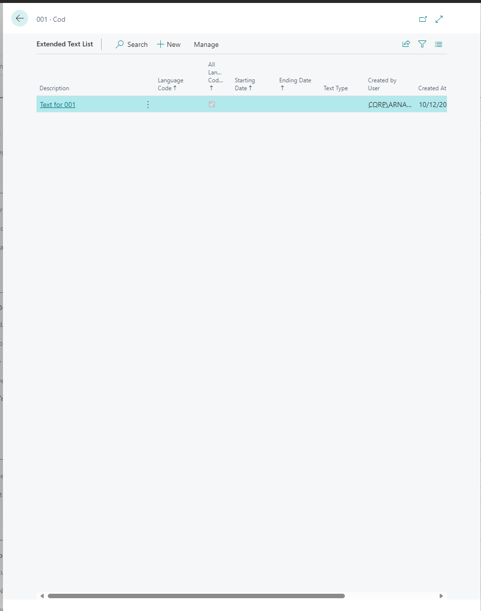 When saved the text is both connected to the Item as well as saved in the Extended Text List.