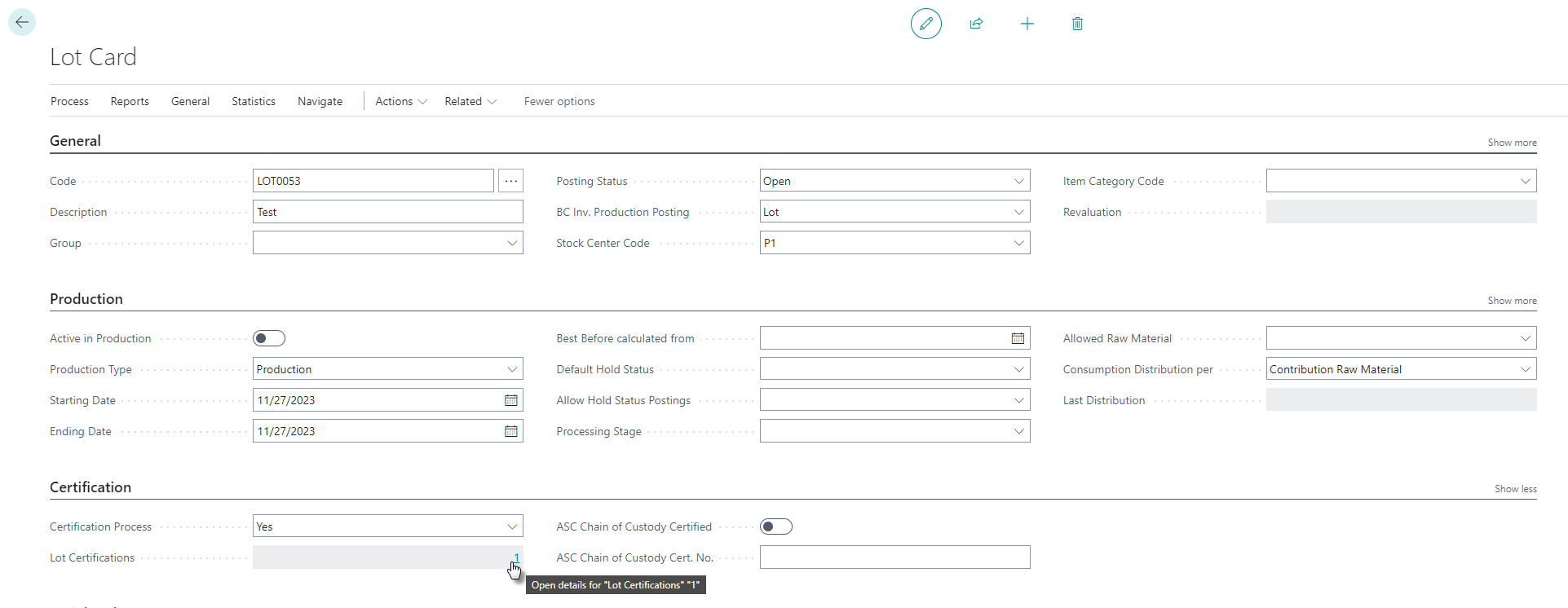 Make sure to mark the Certification Process field on the Lot Card as No.