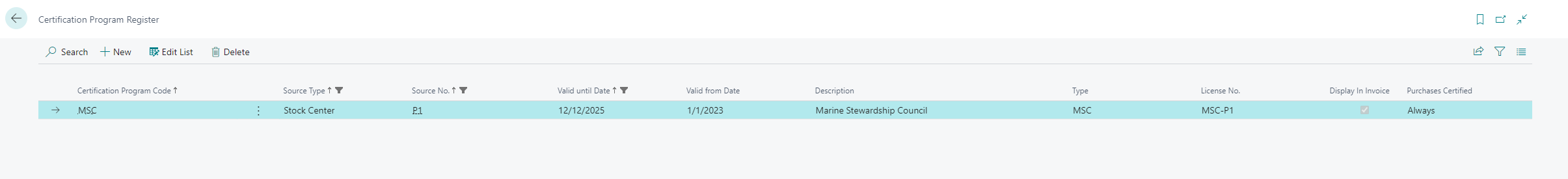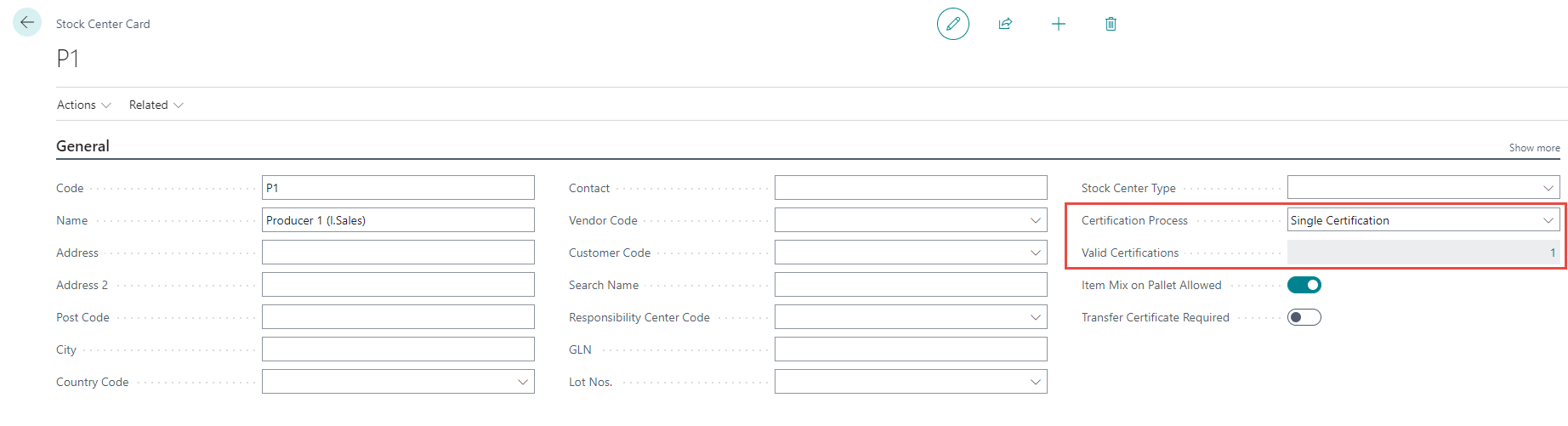 If the company has different certification per Stock Center (producer), then those Certification Programs can be registered for each Stock Center.