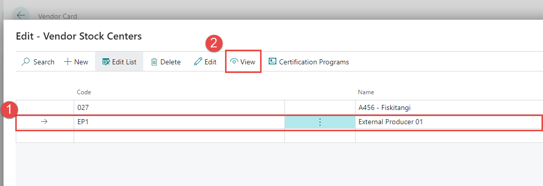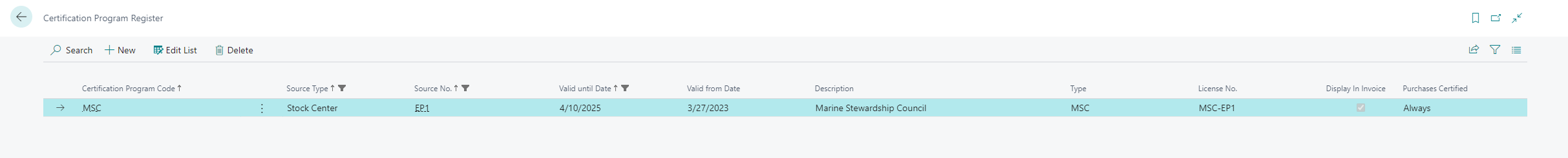 If the vendor is selling certified raw materials from different original producers that have their own certification licenses the Certification Program Register can be recorded for the connected Stock Centers.